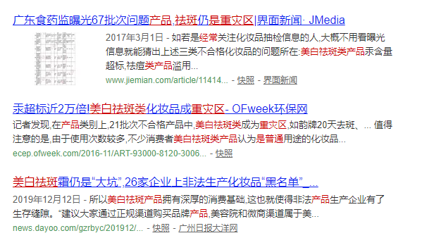 事實(shí)上美白祛斑產(chǎn)品的確不可亂選亂用,因為這類(lèi)美白功效型產(chǎn)品一直是重金屬超標的重災區。以往一些不良商家為了快速達到產(chǎn)品效果,不惜違規添加鉛、汞或者熒光劑一類(lèi)有害物質(zhì),這些產(chǎn)品長(cháng)期使用會(huì )對消費者的皮膚乃至身體造成永久性傷害,所以,一定要注意避坑!